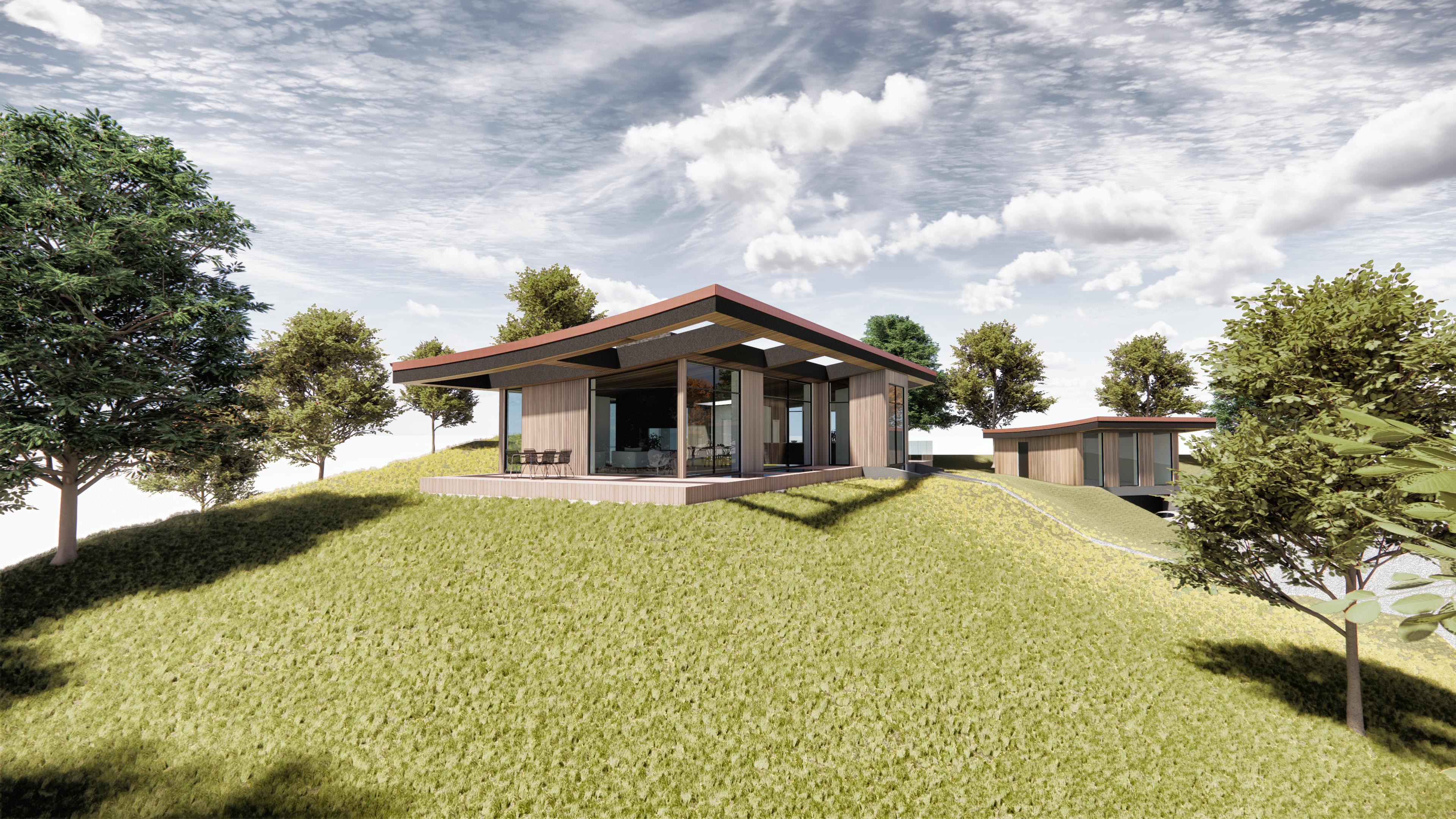 Nyt sommerhus midt i skoven – hvor arkitekturen følger naturens rytme.