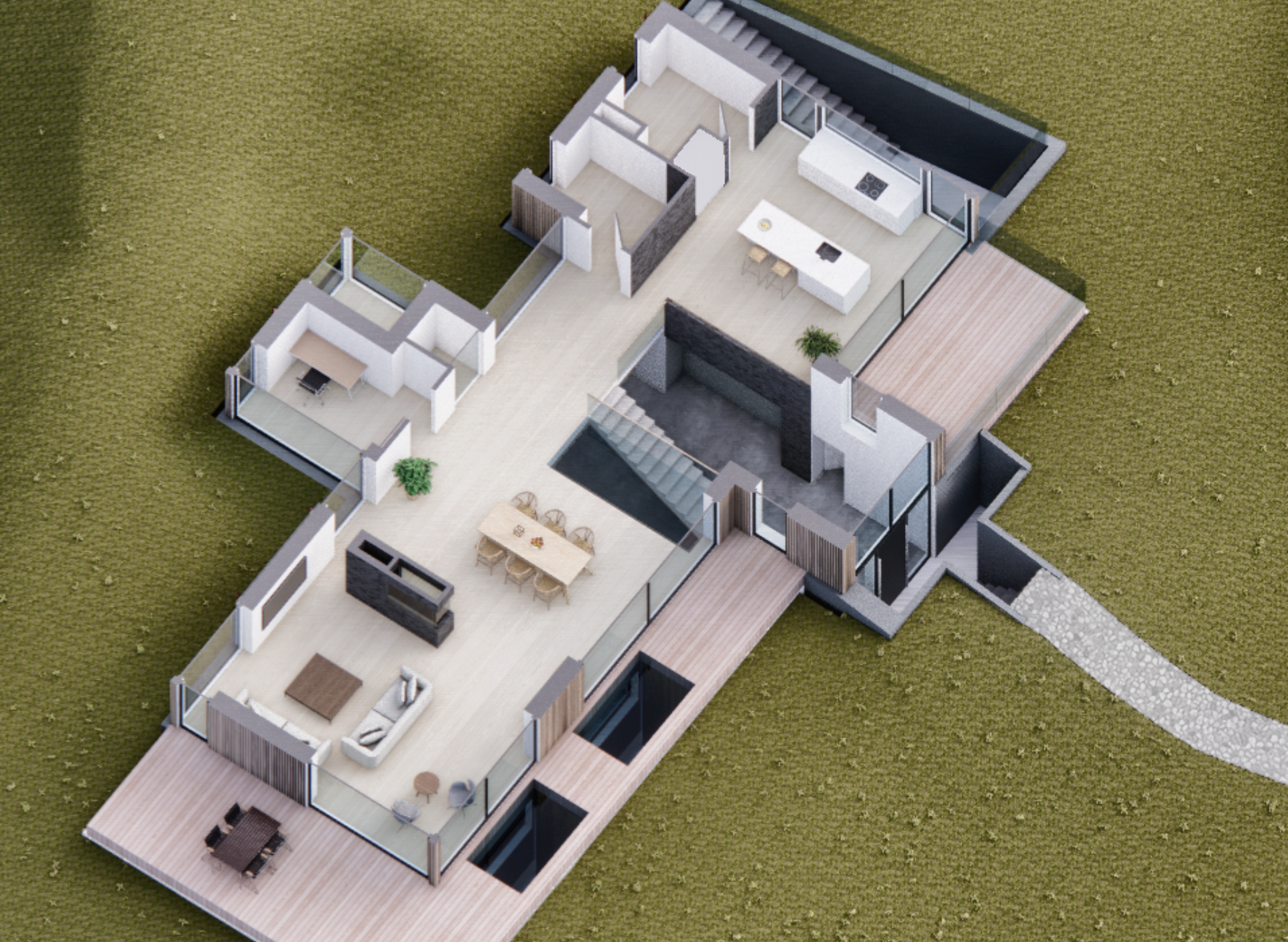 På en kuperet skovgrund har vi netop færdiggjort dette helt særlige sommerhus, hvor hver detalje er nøje gennemtænkt. Bygherren har haft et klart ønske om at skabe et sted, hvor naturen og huset går hånd i hånd og hvor der virkelig er kræset for materialer og stemning. Huset ligger i terrænets naturlige former, med forskudt plan og smukke kig til skoven fra alle rum. Naturlige materialer, speciallavede løsninger og et kompromisløst fokus på kvalitet gør dette projekt til noget helt særligt.