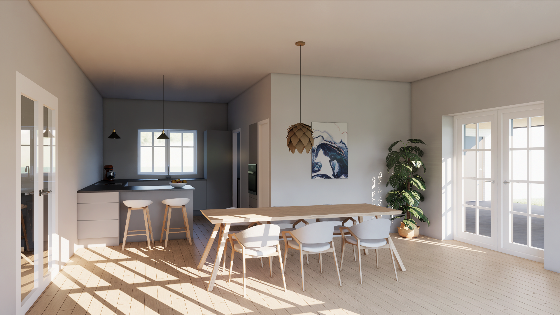 Vi har arbejdet med et spændende projekt på landet, hvor bygherres mange ønsker skulle indpasses i en samlet løsning.